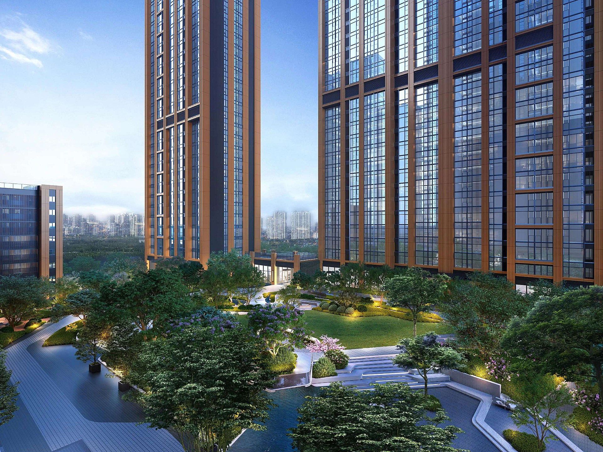 高端商业街区:项目自身还自带石库门商业街区,汇聚国际品牌,未来北站改造后将形成约17.5万方城市绿地,结合社区内约75米的楼间距,景观视野出众。